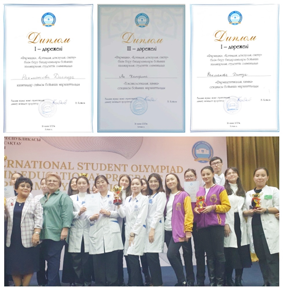 According to the results of the team tour, our team won 1st place, where all 5 team members contributed in all declared disciplines, showing not only excellent theoretical knowledge and practical skills. In the individual competition, our students showed the following results: Rakhmanova D. – 1st place (pharmaceutical chemistry), Matkarim A. – 2nd place (drug technology), Yan K. – 3rd place (toxicological chemistry), Nezvanova K. – 3rd place (pharmacognosy). At the captains' competition, Rakhmanova Dilnoza, a 5th year student, showed brilliant knowledge and erudition in all subjects.