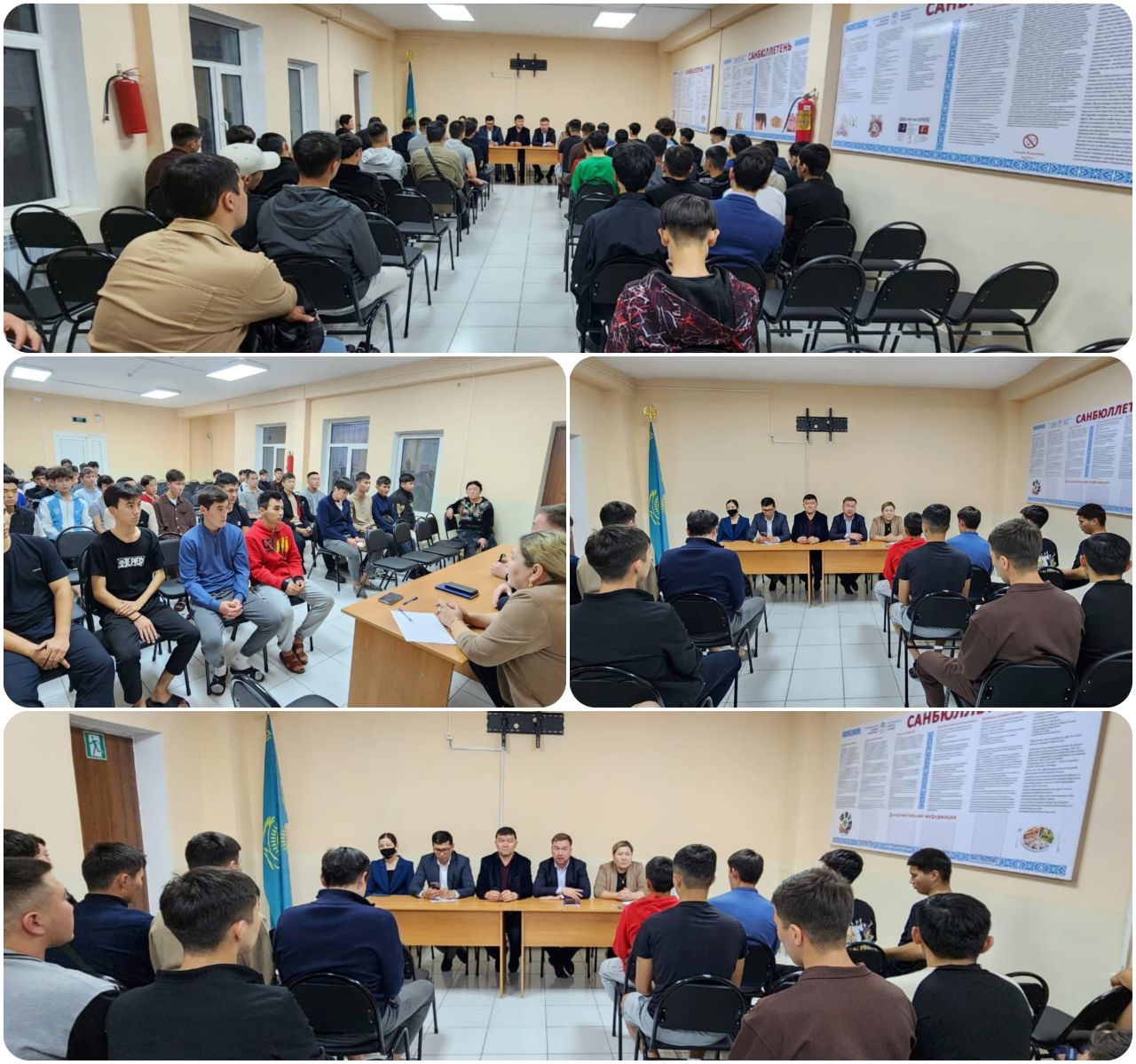 On October 12, 2023 an explanatory meeting on prevention of delinquency was held for students of hostel No. 1 of the SKMA. The event was attended by the Head of Youth Policy Department B. Taszhanov, specialist of Youth Policy Department A. Talgatbek, Deputy Dean of Pharmacy Faculty M. Sapakbai, Dean of Medical Faculty J. Sagtaganov, Deputy Director of Medical College M. A. Taizhanova and dormitory commandant R. Spataeva.