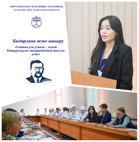 On October 12, 2023, as part of the implementation of the plan of educational work, a round table on the topic «The Great Teacher of the nation – Akhmet Baitursynov» was held, organized by senior teachers of the Department of Kazakh, Russian and Latin languages Zhakupova A. S. and Kemelkhan D. zh